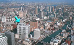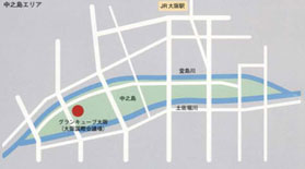 | 堂島・土佐堀両川に分かれた淀川本流が,川下で合流するまでの間,約4kmの細長い島が中之島と呼ばれています. この中之島には,土佐堀川・江戸堀川の川岸や堂島とならんで諸藩の蔵屋敷が設けられ, 「天下の台所」の役割を果たした大坂における商品取引の中心地でした. 中之島は現在も,大阪の都心に位置し,文化・経済の交流拠点としての役割を果たしています. | |