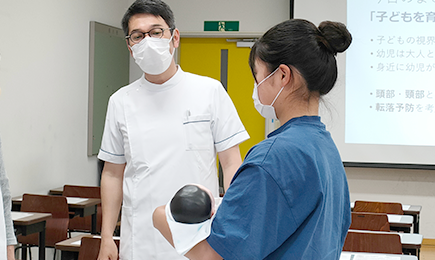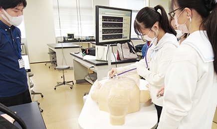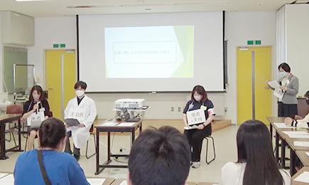 看護学部で実際に使用する実習機器やロールプレイ型講義