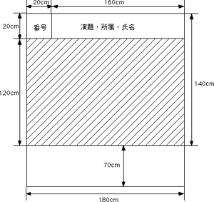 展示板上に,演題番号を大会事務局で用意し表示します.演題,所属,氏名は発表者が用意してください.