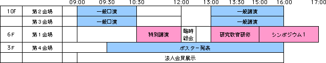 ポスター発表の質疑応答は10,11日ともに9:30〜10:00,15:30〜16:00の2回です.