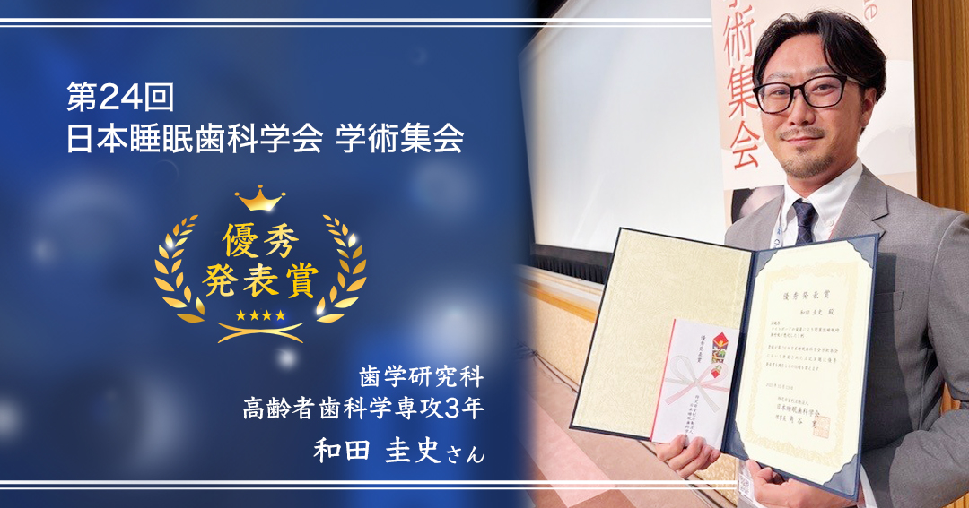 優秀発表賞は、学術集会において発表された一般演題のうち、最も優秀な症例報告を行った発表者に授与されるもので、和田さんの演題は「ナイトガードの装着により閉塞性睡眠時無呼吸症が悪化した1例」。