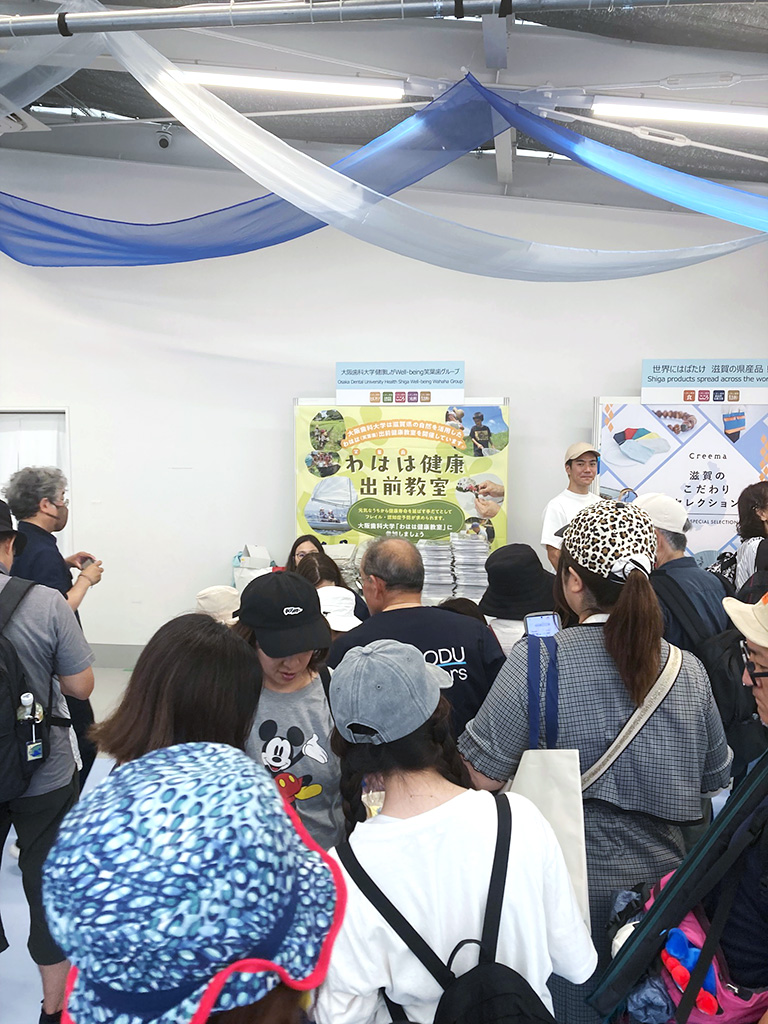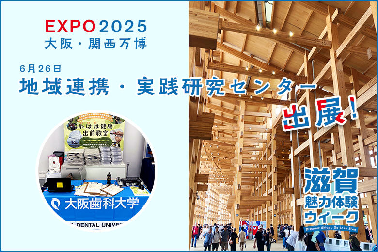EXPO2025大阪・関西万博で期間限定開催された「滋賀魅力体験ウィーク~Discover Shiga, Go Lake Biwa~」に、本学の地域連携・実践研究センターが『大阪歯科大学健康しがWell-Bing笑葉歯(わはは)グループ』として6月26日、ブースを出展しました。