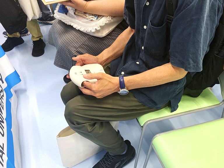 10時から12時までの2時間限定のイベントでしたが、開始直後から30分~1時間待ちの状態で列が途切れることはなく、74名の方に来場いただきました。海外からの参加者や、測定結果に目を凝らす方、「普段はどこで健康教室を行っているのですか」など質問してくださる方もいて、盛況のうちにイベントは終了しました。